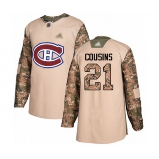 >Youth Montreal Canadiens #21 Nick Cousins Authentic Camo Veterans Day Practice Hockey Jersey