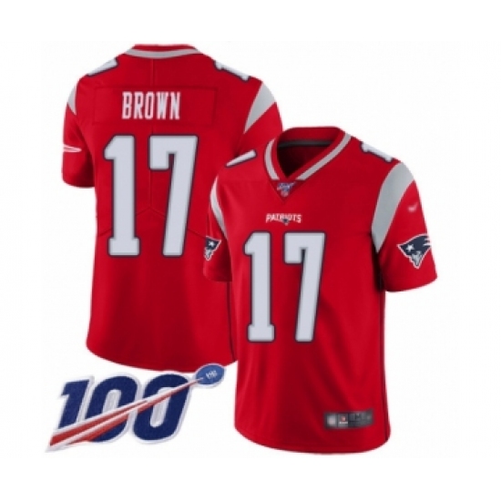 >Youth New England Patriots #17 Antonio Brown Limited Red Inverted Legend 100th Season Football Jersey