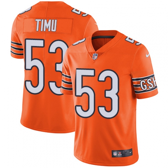 Home>NFL>Chicago Bears>John Timu>Youth Nike Chicago Bears #53 John Timu Limited Orange Rush Vapor Untouchable NFL Jersey