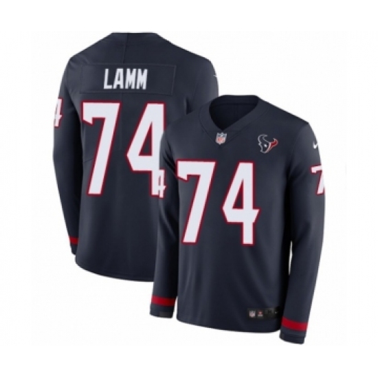 >Youth Nike Houston Texans #74 Kendall Lamm Limited Navy Blue Therma Long Sleeve NFL Jersey