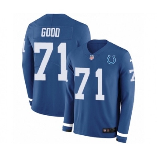 >Youth Nike Indianapolis Colts #71 Denzelle Good Limited Blue Therma Long Sleeve NFL Jersey