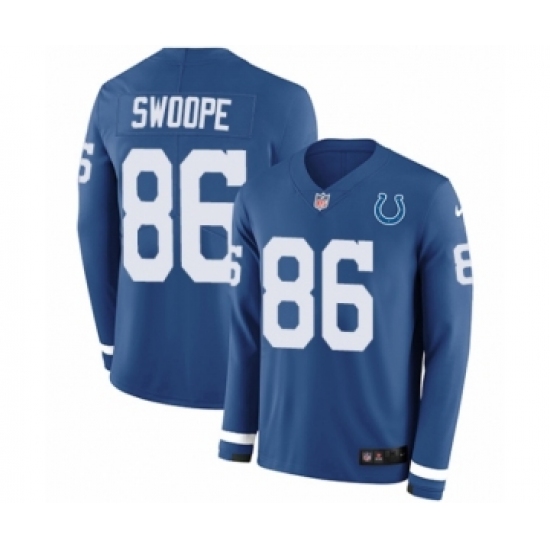 >Youth Nike Indianapolis Colts #86 Erik Swoope Limited Blue Therma Long Sleeve NFL Jersey