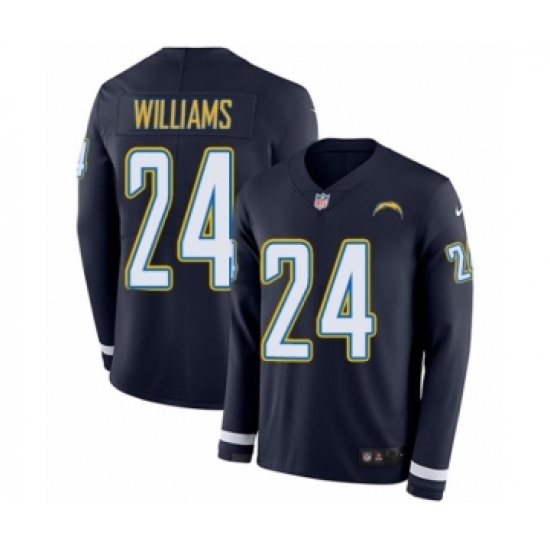 >Youth Nike Los Angeles Chargers #24 Trevor Williams Limited Navy Blue Therma Long Sleeve NFL Jersey