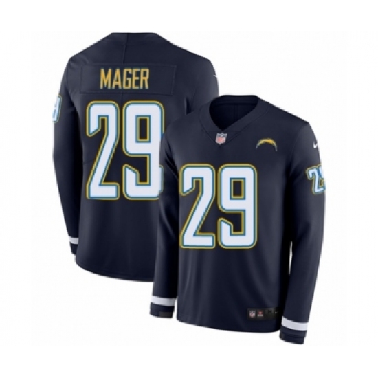 Men's Nike Los Angeles Chargers #29 Craig Mager Limited Navy Blue Therma Long Sleeve NFL Jersey