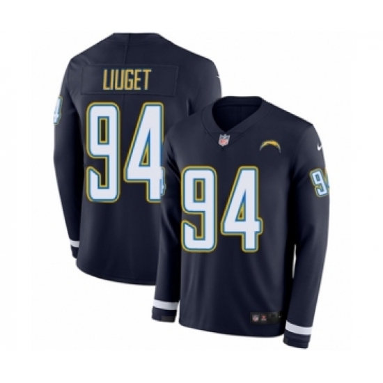 >Youth Nike Los Angeles Chargers #94 Corey Liuget Limited Navy Blue Therma Long Sleeve NFL Jersey