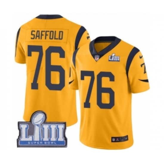 Youth Nike Los Angeles Rams #76 Rodger Saffold Limited Gold Rush Vapor Untouchable Super Bowl LIII Bound NFL Jersey