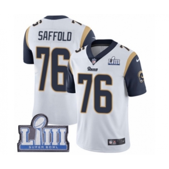 Men's Nike Los Angeles Rams #76 Rodger Saffold White Vapor Untouchable Elite Player Super Bowl LIII Bound NFL Jersey
