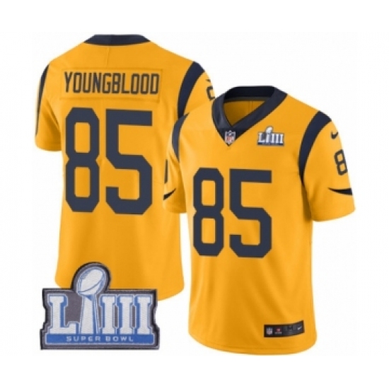 >Youth Nike Los Angeles Rams #85 Jack Youngblood Limited Gold Rush Vapor Untouchable Super Bowl LIII Bound NFL Jersey