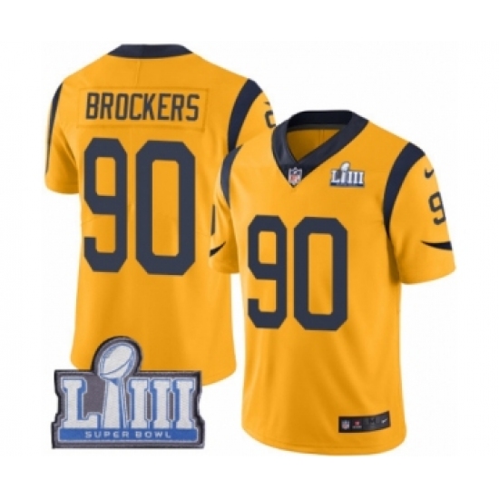 >Youth Nike Los Angeles Rams #90 Michael Brockers Limited Gold Rush Vapor Untouchable Super Bowl LIII Bound NFL Jersey