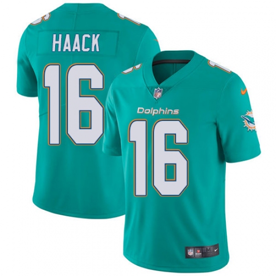 Home>NFL>Miami Dolphins>Matt Haack>Youth Nike Miami Dolphins #16 Matt Haack Aqua Green Team Color Vapor Untouchable Elite Player NFL Jersey