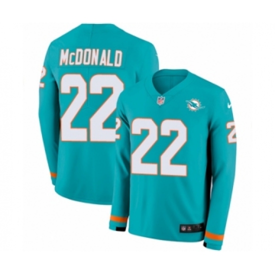 Youth Nike Miami Dolphins #22 T.J. McDonald Limited Aqua Therma Long Sleeve NFL Jersey