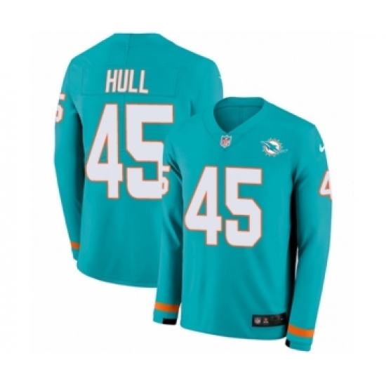 Youth Nike Miami Dolphins #45 Mike Hull Limited Aqua Therma Long Sleeve NFL Jersey