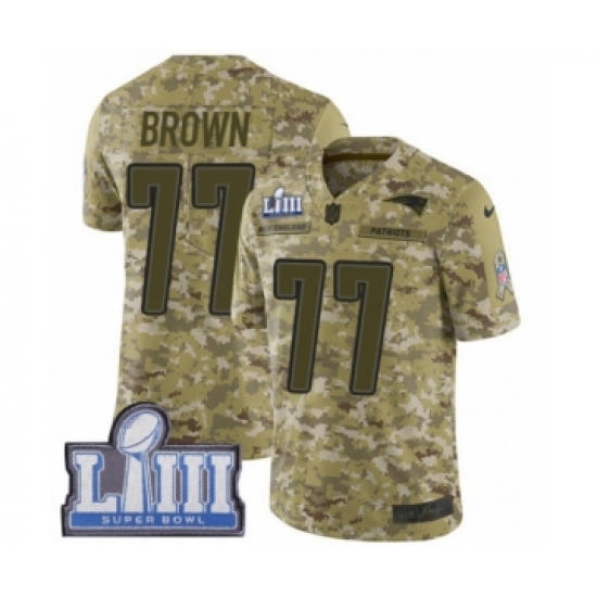 Youth Nike New England Patriots #77 Trent Brown Limited Camo 2018 Salute to Service Super Bowl LIII Bound NFL Jersey