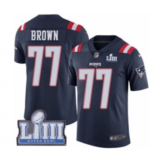 Youth Nike New England Patriots #77 Trent Brown Limited Navy Blue Rush Vapor Untouchable Super Bowl LIII Bound NFL Jersey