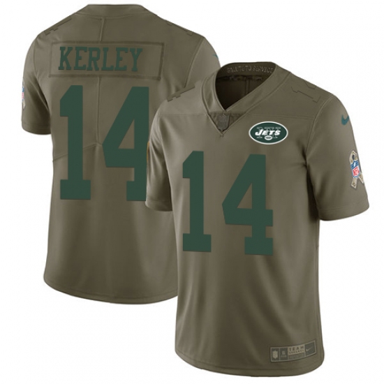 Home>NFL>New York Jets>Jeremy Kerley>Youth Nike New York Jets #14 Jeremy Kerley Limited Olive 2017 Salute to Service NFL Jersey
