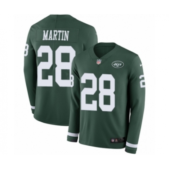 >Youth Nike New York Jets #28 Curtis Martin Limited Green Therma Long Sleeve NFL Jersey