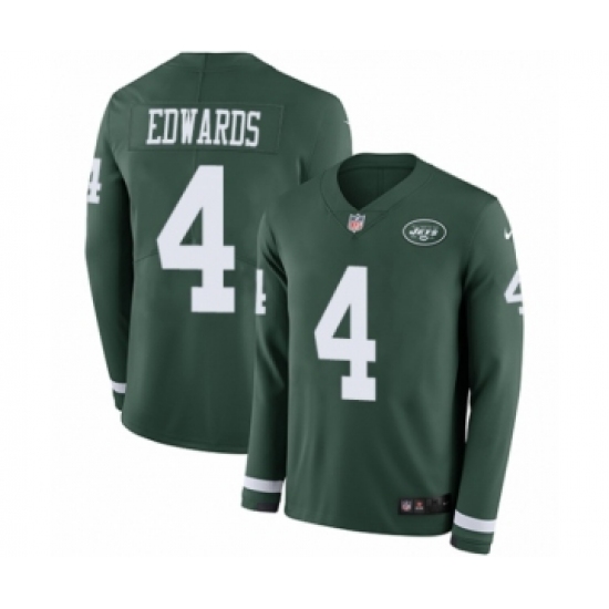 >Youth Nike New York Jets #4 Lac Edwards Limited Green Therma Long Sleeve NFL Jersey