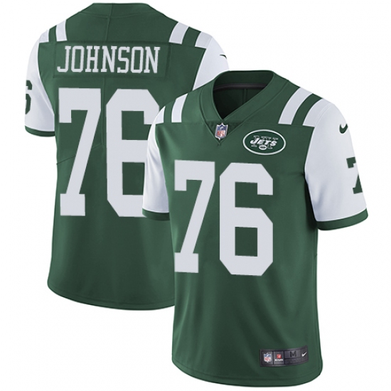 Home>NFL>New York Jets>Wesley Johnson>Youth Nike New York Jets #76 Wesley Johnson Green Team Color Vapor Untouchable Limited Player NFL Jersey