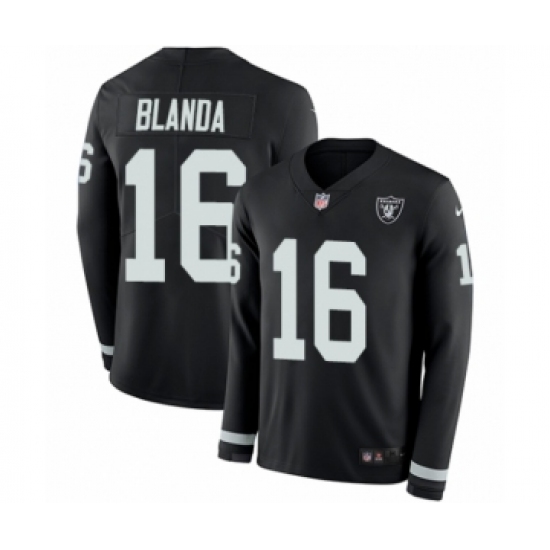 >Youth Nike Oakland Raiders #16 George Blanda Limited Black Therma Long Sleeve NFL Jersey