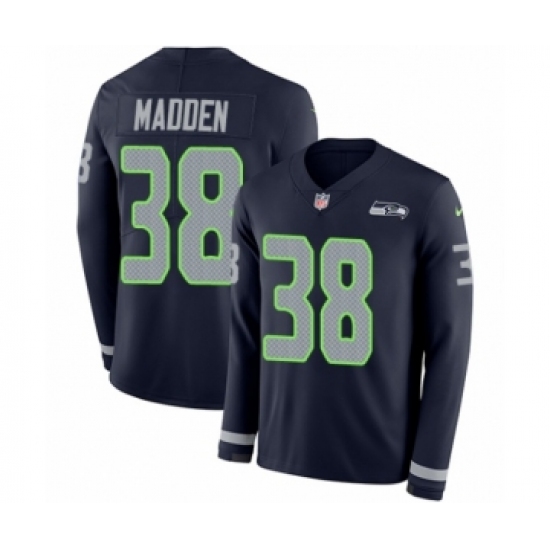 >Youth Nike Seattle Seahawks #38 Tre Madden Limited Navy Blue Therma Long Sleeve NFL Jersey