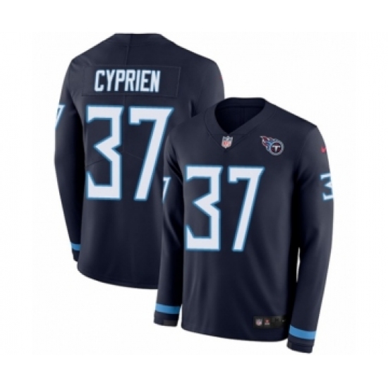 >Youth Nike Tennessee Titans #37 Johnathan Cyprien Limited Navy Blue Therma Long Sleeve NFL Jersey