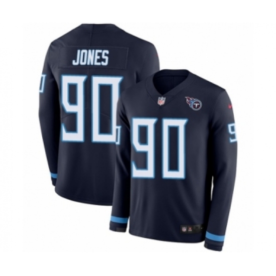 Men's Nike Tennessee Titans #90 DaQuan Jones Limited Navy Blue Therma Long Sleeve NFL Jersey