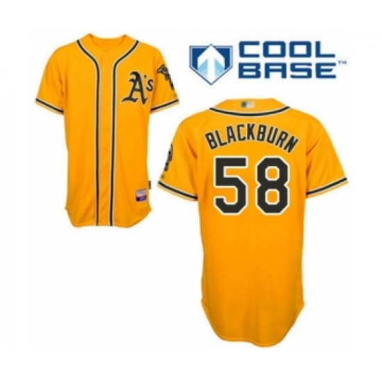 >Youth Oakland Athletics #58 Paul Blackburn Authentic Gold Alternate 2 Cool Base Baseball Player Jersey