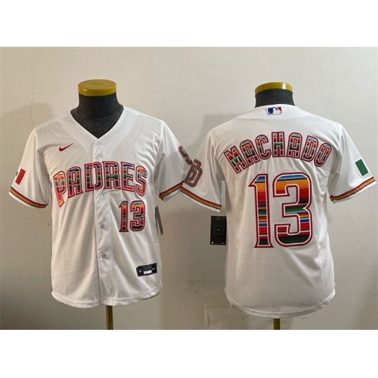 Youth San Diego Padres #13 Manny Machado White Mexico Cool Base Stitched Baseball Jersey