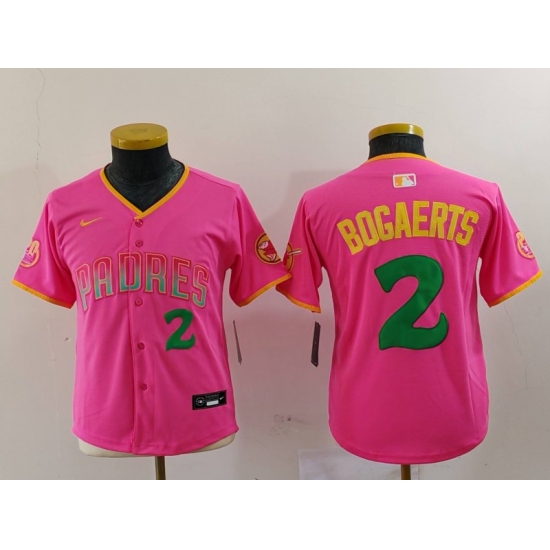 >Youth San Diego Padres #2 Xander Bogaerts Pink Player Number Fashion Baseball Jersey