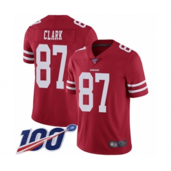 Youth San Francisco 49ers #87 Dwight Clark Red Team Color Vapor Untouchable Limited Player 100th Season Football Jersey
