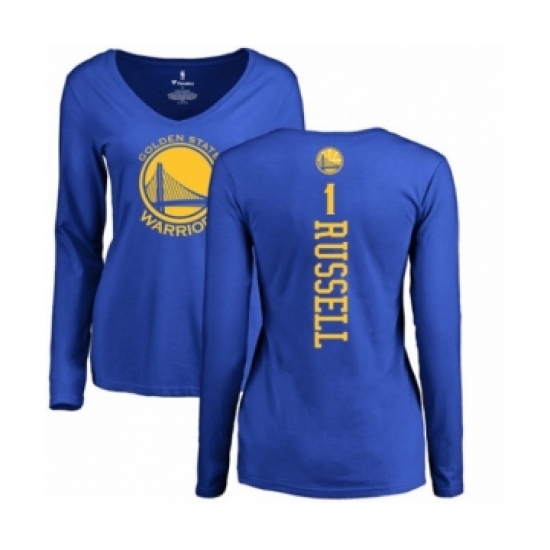 >Basketball Women's Golden State Warriors #1 D'Angelo Russell Royal Blue Backer Long Sleeve T-Shirt