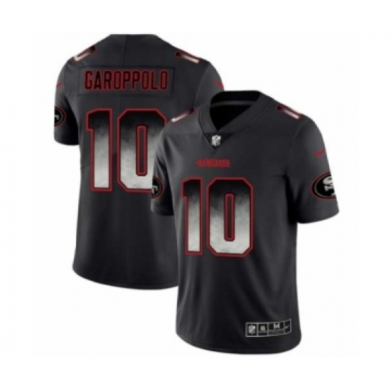 >Men San Francisco 49ers #10 Jimmy Garoppolo Black Smoke Fashion Limited Jersey