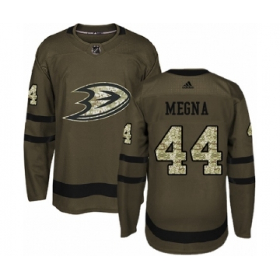 Men's Adidas Anaheim Ducks #44 Jaycob Megna Authentic Green Salute to Service NHL Jersey