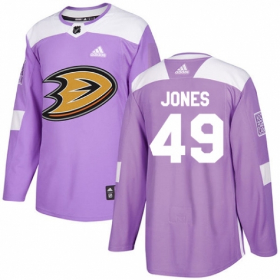 Men's Adidas Anaheim Ducks #49 Max Jones Authentic Purple Fights Cancer Practice NHL Jersey