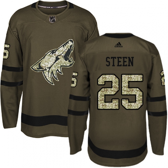Home>NHL>Arizona Coyotes>Thomas Steen>Men's Adidas Arizona Coyotes #25 Thomas Steen Premier Green Salute to Service NHL Jersey