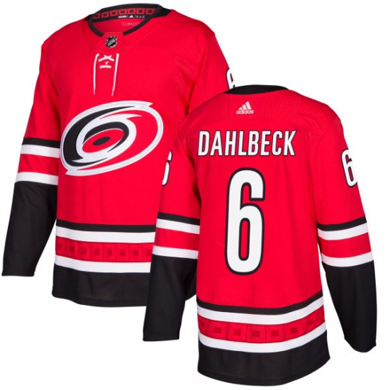 Home>NHL>Carolina Hurricanes>Klas Dahlbeck>Men's Adidas Carolina Hurricanes #6 Klas Dahlbeck Authentic Red Home NHL Jersey
