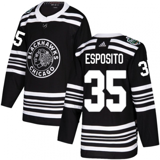 Men's Adidas Chicago Blackhawks #35 Tony Esposito Authentic Black 2019 Winter Classic NHL Jersey
