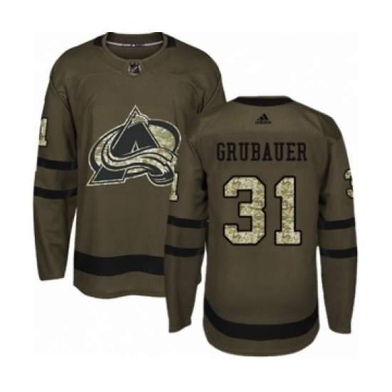 >Men's Adidas Colorado Avalanche #31 Philipp Grubauer Authentic Green Salute to Service NHL Jersey