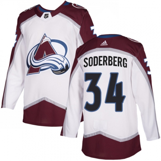 >Men's Adidas Colorado Avalanche #34 Carl Soderberg White Road Authentic Stitched NHL Jersey