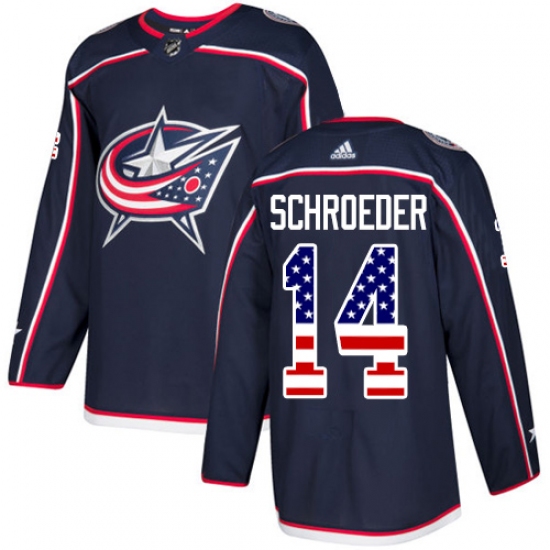 Home>NHL>Columbus Blue Jackets>Jordan Schroeder>Men's Adidas Columbus Blue Jackets #14 Jordan Schroeder Authentic Navy Blue USA Flag Fashion NHL Jersey