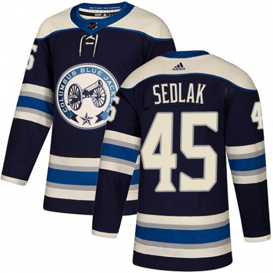 >Men's Adidas Columbus Blue Jackets #45 Lukas Sedlak Authentic Navy Blue Alternate NHL Jersey