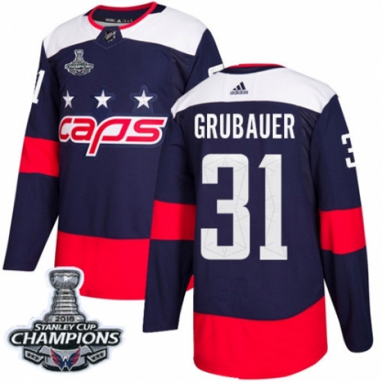 Men's Adidas Washington Capitals #31 Philipp Grubauer Authentic Navy Blue 2018 Stadium Series 2018 Stanley Cup Final Champions NHL Jersey