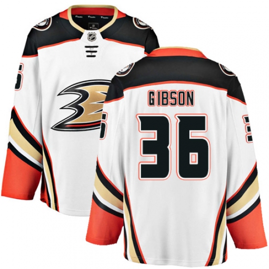 Men's Anaheim Ducks #36 John Gibson Fanatics Branded White Away Breakaway NHL Jersey