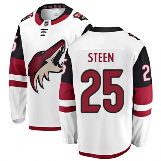 Home>NHL>Arizona Coyotes>Thomas Steen>Men's Arizona Coyotes #25 Thomas Steen Authentic White Away Fanatics Branded Breakaway NHL Jersey