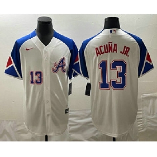 Mens Atlanta Braves #13 Ronald Acuna Jr Number White 2023 City Connect Cool Base Stitched Jersey