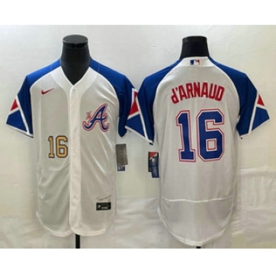 >Men's Atlanta Braves #16 Travis dArnaud Number White 2023 City Connect Flex Base Stitched Jersey1