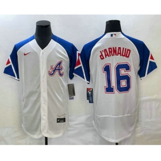 Men's Atlanta Braves #16 Travis dArnaud White 2023 City Connect Flex Base Stitched Jersey