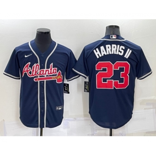 >Men's Atlanta Braves #23 Michael Harris II Navy Blue Stitched MLB Cool Base Nike Jersey