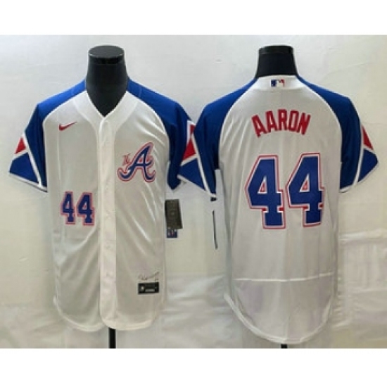 Men's Atlanta Braves #44 Hank Aaron White 2023 City Connect Flex Base Stitched Jersey