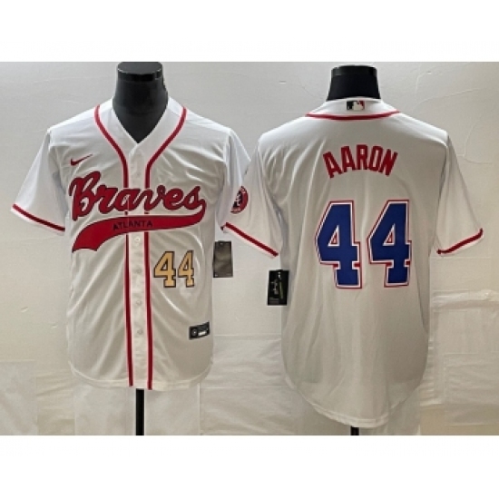 Men's Atlanta Braves #44 Hank Aaron Number White Cool Base Stitched Baseball Jersey